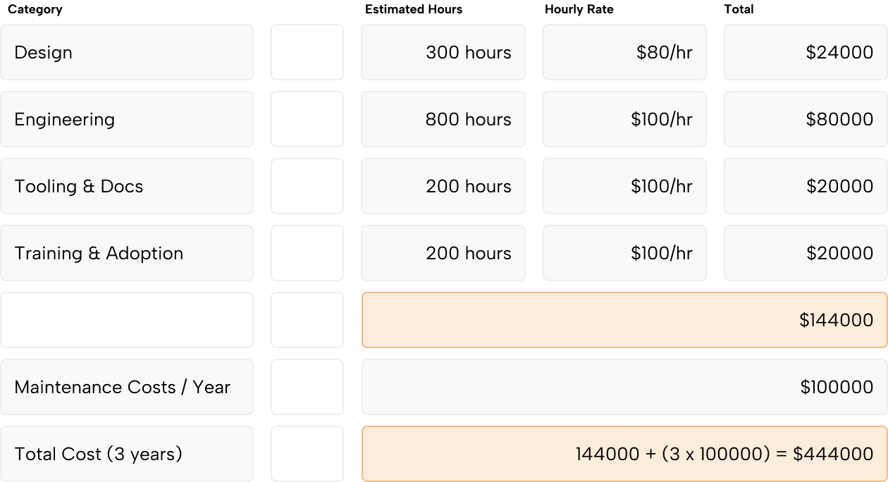 Countless hours spent in meetings in order to align and to plan recovering from technical debt.